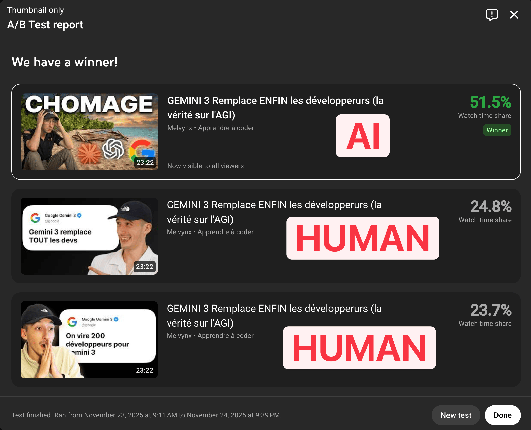 That single test made me fire my thumbnail designer and go all-in on AI. The performance difference was too significant to ignore.